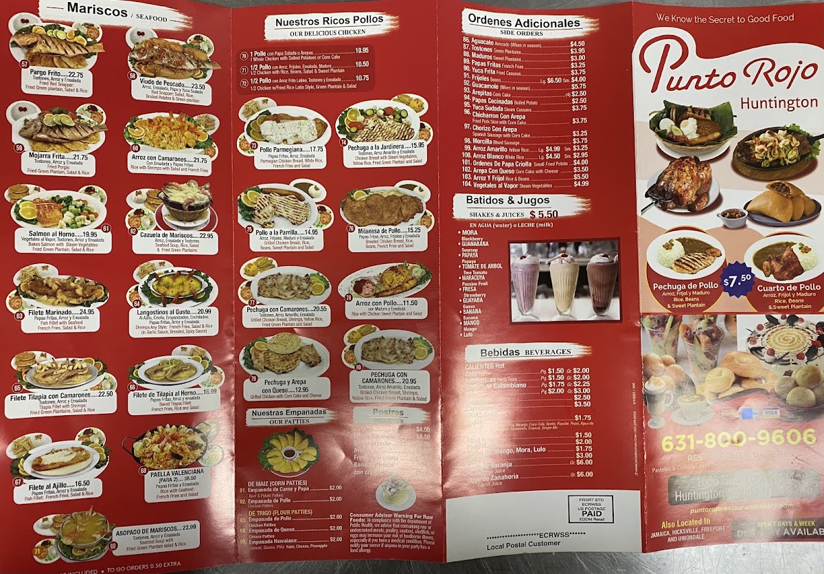 Welcome to Punto Rojo Bakery and Restaurant, nestled at 1666 New York Ave in Huntington Station. This culinary gem offers a delightful fusion of Colombian flavors, ensuring a memorable dining experience. Their menu features an array of sumptuous sandwiches, such as the #84 Media Noche and the Hamburguesa Texana, compellingly priced for great value.